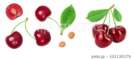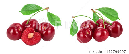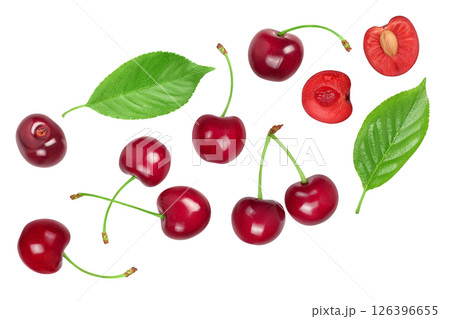 red sweet cherry isolated on white background with full depth of field. Set collection