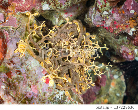 妖しく美しい大きなテヅルモヅル(ヒトデ科)。 触手がうねうね動く。伊豆半島賀茂郡南伊豆町中木ヒリゾ浜