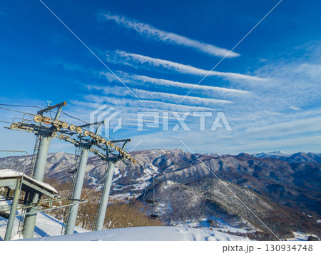 快晴のスキー場から一望する北志賀高原の冬景色 (長野県、山ノ内町、夜間瀬)