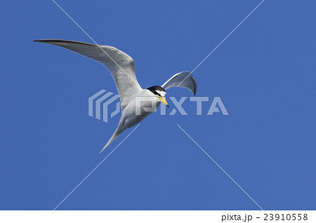魚に狙いを定め、」ダイヴ直前のコアジサシ