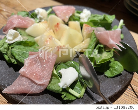 桃モッツアレラ、ルッコラ、生ハムのイタリアンサラダ