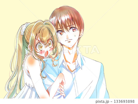 寄り添う女性と照れる男性