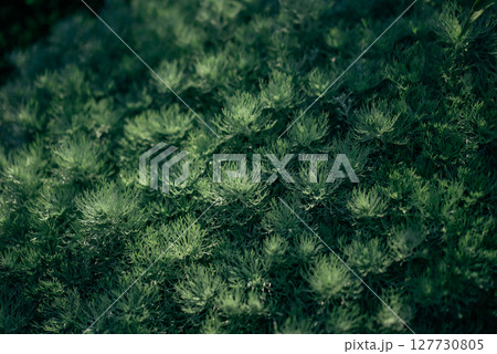 Green textured background of lush artemisia or ornamental foliage. Schmidtiana