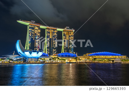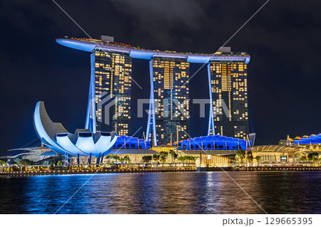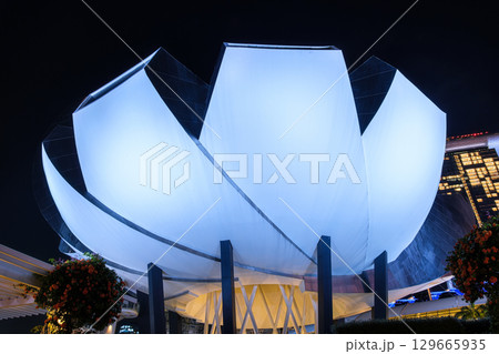 シンガポール 夜のマリーナベイ・サンズ、アート・サイエンス・ミュージアム