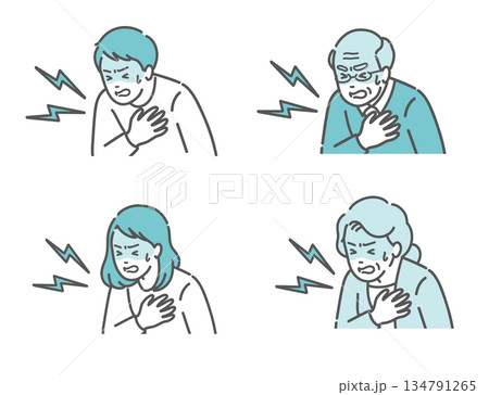 高齢者 年配 男女 心筋梗塞 発作 大動脈瘤 乳がん イラスト素材