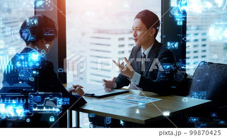 握手するビジネスパーソンとデジタルテクノロジーのコンセプト