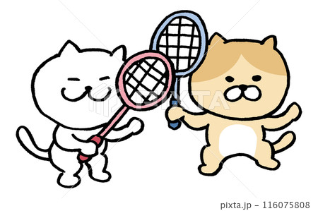 バドミントンをするかわいい猫のキャライラスト