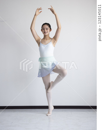 クラシックバレエのポーズをとる女性 スワンのように両手を広げる