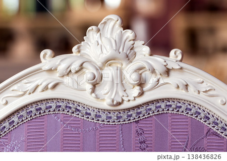 Elegant close-up of a vintage carved white chair back