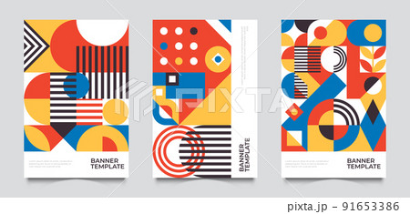 Retro swiss graphic posters with geometric bauhaus shapes. Vector abstract backgrounds in old