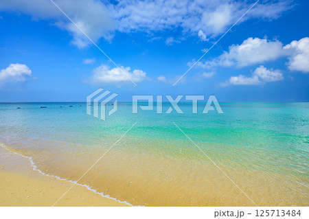 白い砂浜と青い空が広がる川平湾のビーチ 白い砂浜と青い空