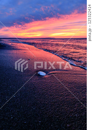 色彩豊かな雲が広がる石垣島の海岸で迎える幻想的な夕暮れ