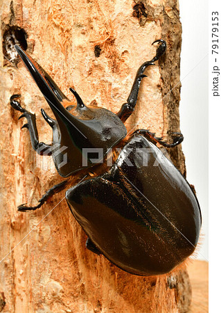 木に登るオスのカブトムシ