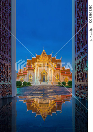 Beautiful Thai Marble Temple (Wat Benchamabophit) during twilight