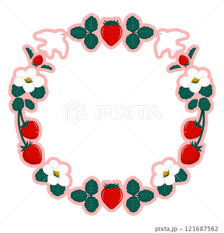 イチゴのフレーム背景_円形