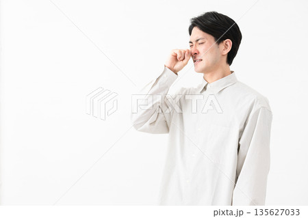 ティッシュで鼻をかむ男性のイラスト(風邪・鼻水・花粉症)