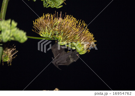 リュウゼツランの花の蜜を吸いに来たオガサワラオオコウモリ