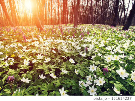 Colorful natural snowdrop flowers. Landscape in sunny day. Beautiful nature delicate white flowers field. Blooming spring meadow of light outdoors sun. Vertical photo. High quality photo
