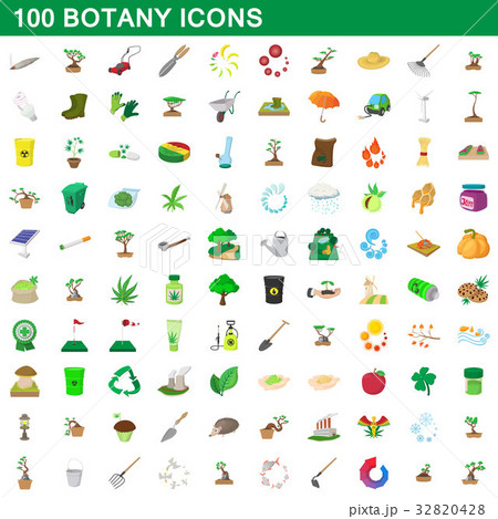 100 botany icons set, cartoon style
