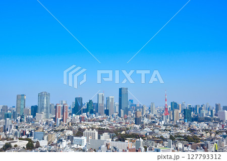 日本の東京都市景観 ワールドタワーレジデンスや世界貿易センタービルディング南館(画面左)などを望む