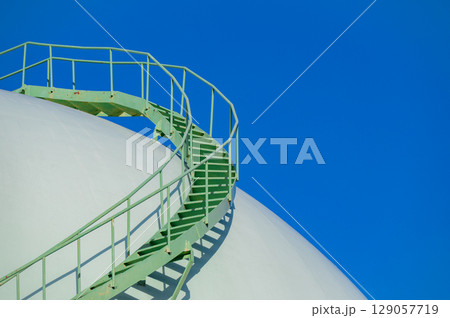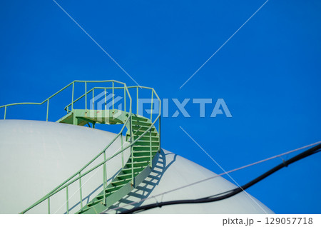 貯蔵タンクの階段と青空