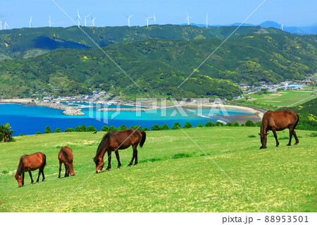 【宮崎県】快晴下の都井岬(御崎馬の放牧)