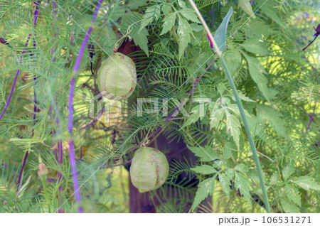 ぶら下がるフウセンカズラの果実/Cardiospermum halicacabum