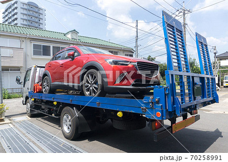 ロードサービス ローダーキャリアカーの荷台に乗り上げる自動車