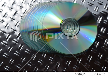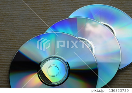 虹色に反射するCDとDVD