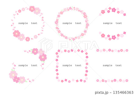 春の桜の和風フレームセット ベクターイラスト レトロモダン 装飾 見出し タイトル 新生活 ピンク