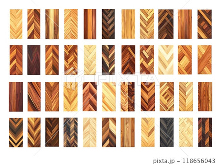 Cartoon herringbone laminate. Wooden parquet floor oak willow beech hardwood natural timber Interior decorative covers construction building material elements, isolated vector set