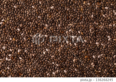Heap of chia seeds, concept of healthy food containing natural vitamins, fiber and minerals