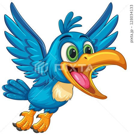 Cheerful Blue Hornbill Cartoon Illustration