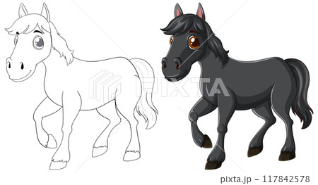 Coloring and Colored Unicorn Illustration
