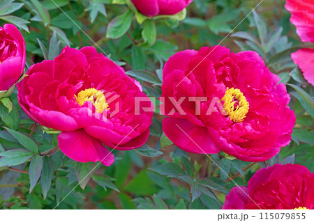 芍薬園にピンク色のシャクヤクが咲いています