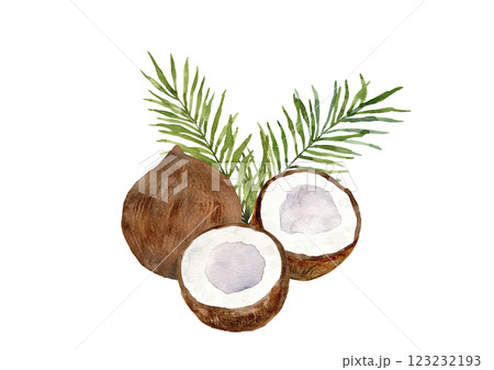 割れたココナッツ 水彩素材