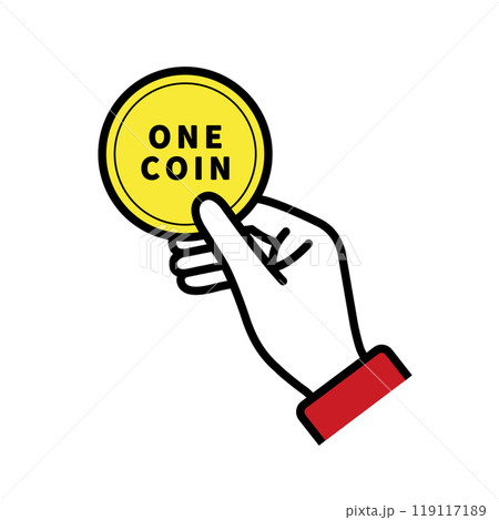 ワンコイン、コインを持つ手のイラスト