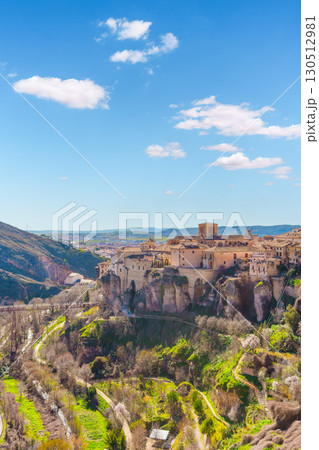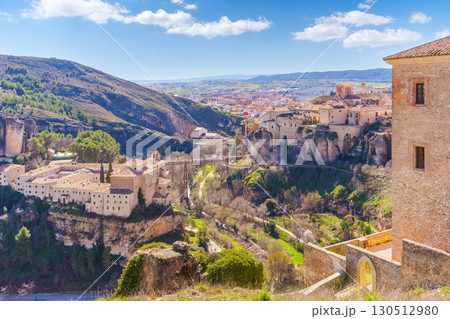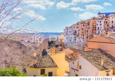 Cuenca cityscape featuring the hanging houses, spain, during a sunny spring day