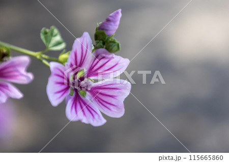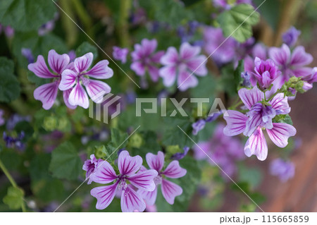 紫色の花を咲かすマロウ