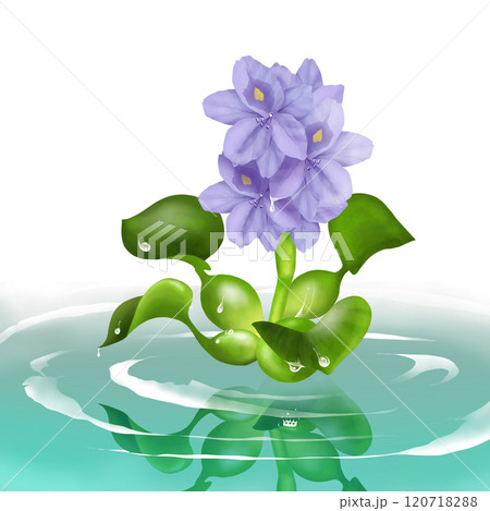 10月秋の池に咲く薄紫色のホテイアオイの花