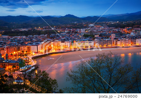 Panorama of Bay of La Concha in evening. Donostia, Spain