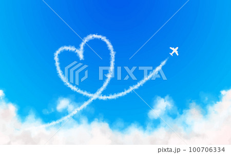 ハートを描いた飛行機雲と飛行機