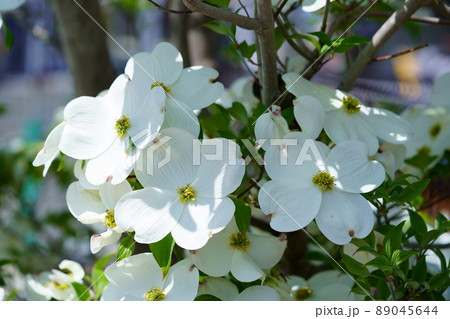 春の日差しを浴びる白いハナミズキ