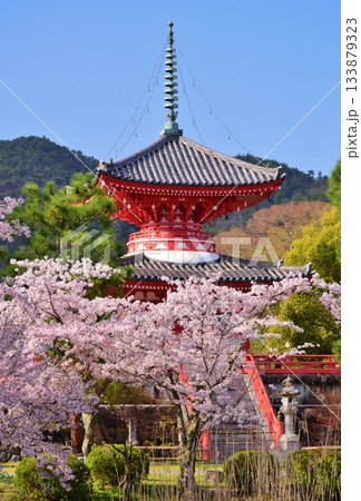 桜咲く大覚寺の大沢池 多宝堂と桜の風景 春の京都観光スポット 京都の桜の名所