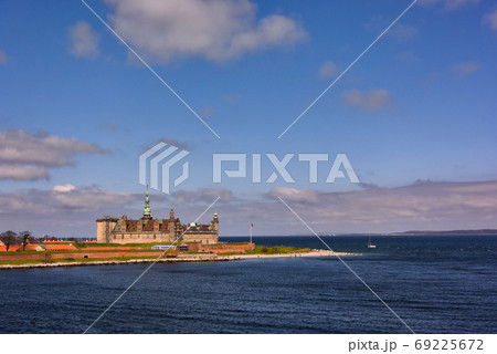 ハムレットの城、クロンボー城、スウェーデンへのフェリーからの眺め。