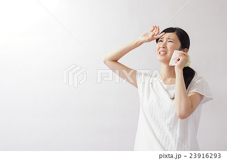 ハンカチで汗を拭く女性、憂鬱、ダレる