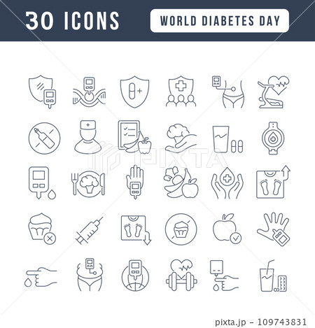 Diabetes, Disease Diagnostics Linear Vector Icons Set