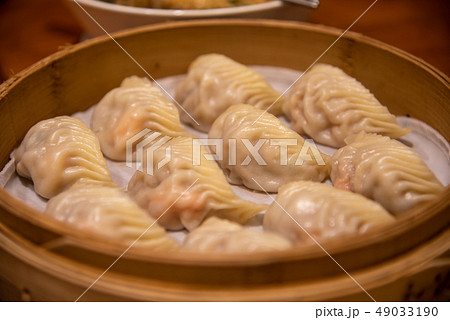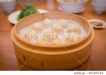 中華料理 飲茶 竹の蒸し器に入った小籠包