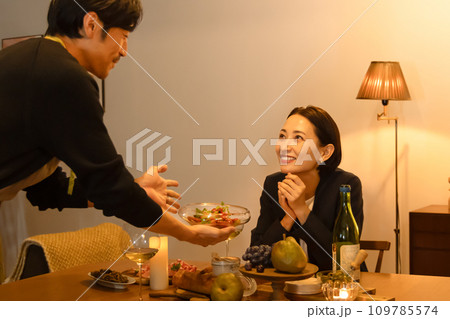 ホームパーティーの食事を妻に振る舞う夫
