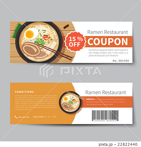 Trendy color discount card or voucher for fast food restaurant or delivery service, front and back template design with linear food and drinks combo menu